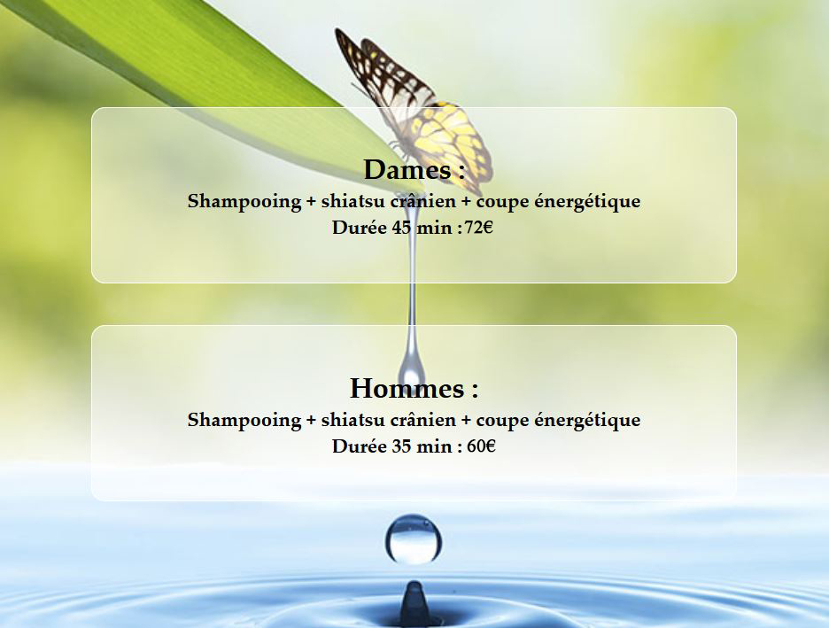 Avant la coupe, Jimmy effectue un shiatsu crânien sur chaque méridien apportant grande détente et stimulation énergétique.